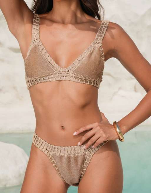 Moda Minx x Alejandra Vidal - Bikini marrón con acabado de purpurina y ribete de croché
