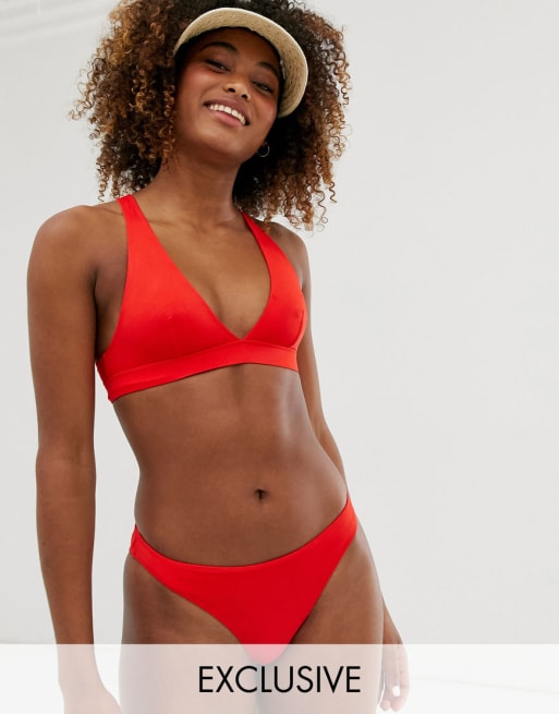 Bikini con tanga y top escotado en rosa de Monki