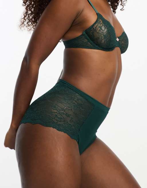 Braguitas verde oscuro de corte amplio y talle alto de encaje Mix & Match de Monki