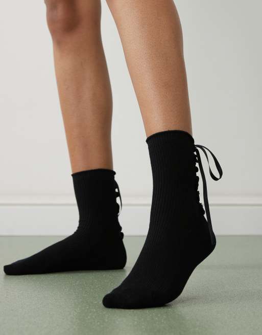 Calcetines tobilleros negros con detalle de cordones de Monki