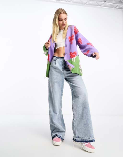 Cárdigan largo con diseño de jacquard de lazos de punto de Monki