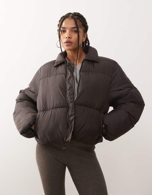 Chaqueta corta marrón acolchada con detalle de solapas de Monki