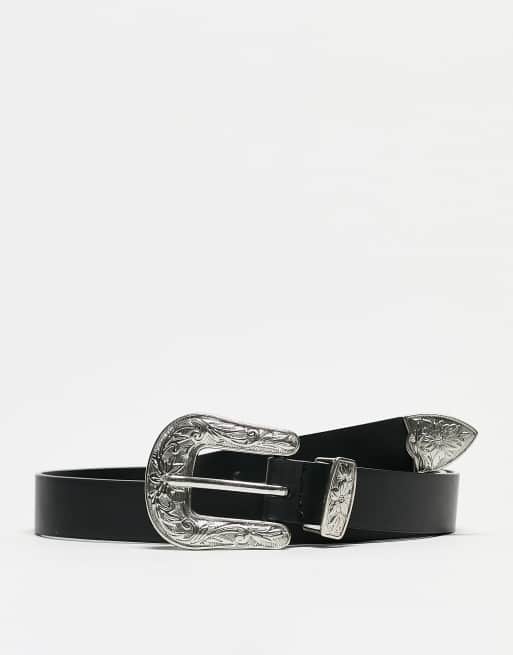 Cinturón negro de estilo wéstern con hebilla plateada de Monki