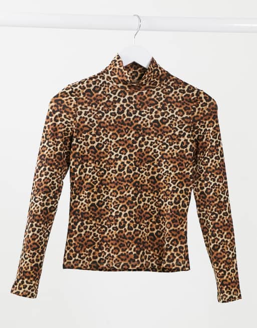 Monki Vanja top de algodón con estampado de leopardo en marrón - MARRON