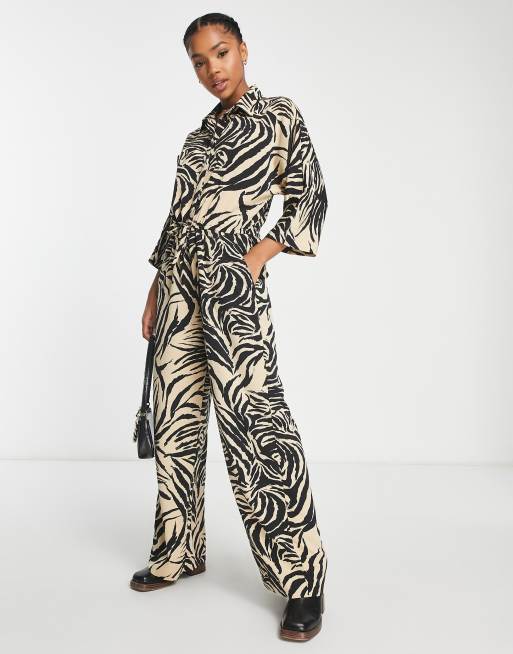 Mono estilo worker con estampado de cebra beis y negro de Monki