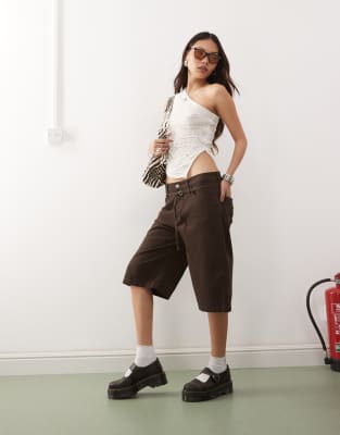 Pantalones cortos vaqueros marrón oscuro de estilo carpintero de Monki