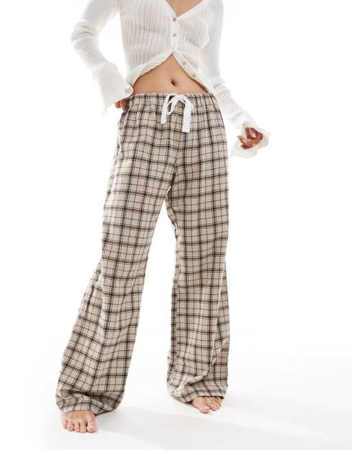 Pantalones de pijama beis a cuadros de pernera ancha de Monki