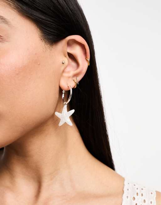 Pendientes blancos con diseño de estrella de mar de Monki