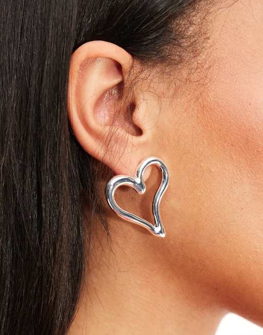 Pendientes de aro plateados en forma de corazón calado de Monki