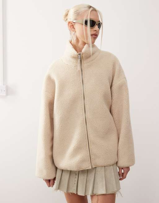 Polar blanco hueso de manga larga con forro rosa con estampado floral, cremallera y ribetes en contraste de Monki