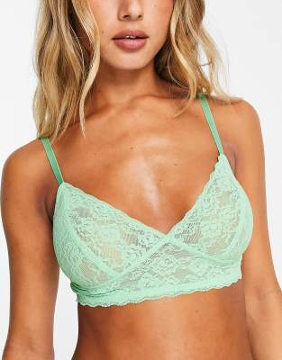 Sujetador verde triangular de encaje con bordes festoneados de Monki