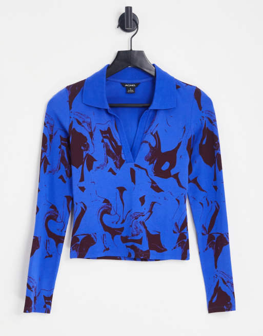 Top azul y morado de manga larga con solapas de Monki