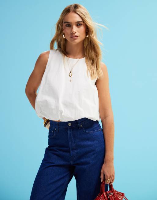 Top blanco abullonado de popelina de Monki