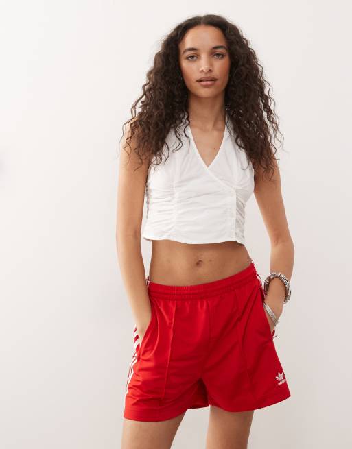 Top blanco cruzado con cuello halter y lateral fruncido de Monki