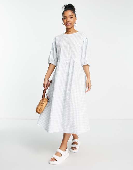 Vestido a cuadros vichy azules de corte amplio de sirsaca de Monki
