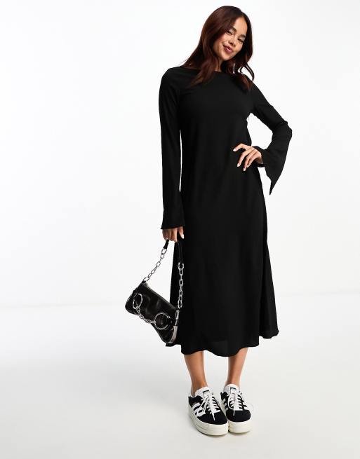 Vestido largo negro de manga larga con mangas acampanadas de Monki