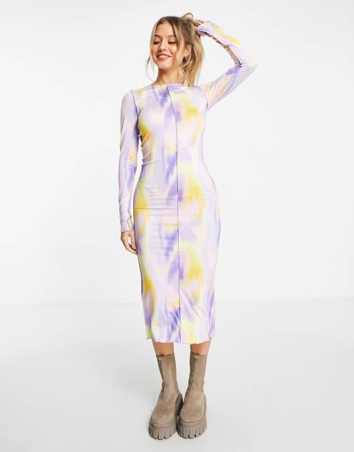 Vestido midi lila de manga larga con estampado de malla de Monki