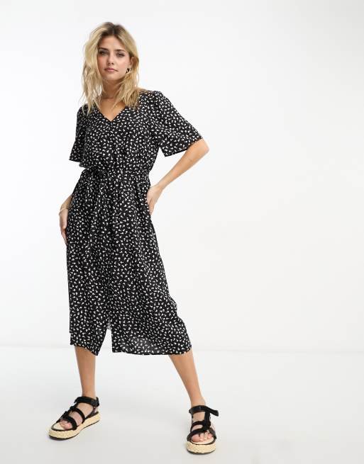 Vestido midi negro cruzado con estampado de florecitas de Monki