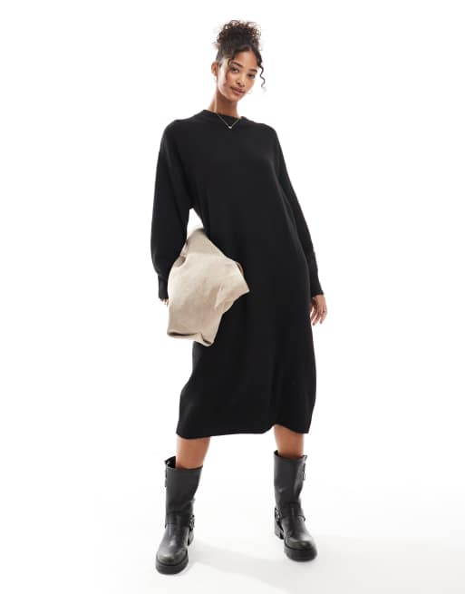 Vestido midi negro estilo jersey de manga larga de punto de Monki