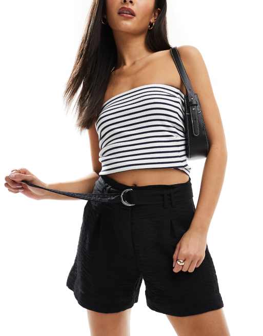 Pantalones cortos de sastre negros con detalle de hebilla de Morgan