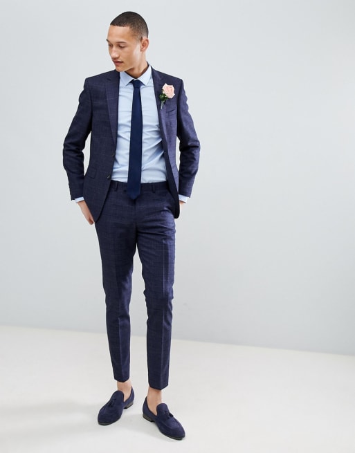 Traje ajustado con cuadros en azul marino de Moss London Wedding