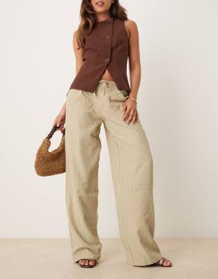 Pantalones caquis a rayas holgados de pernera ancha de lino Juria de Motel
