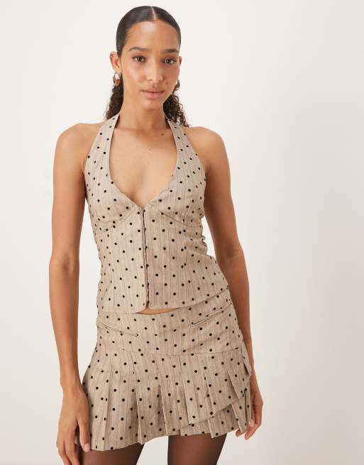 Top beis de tirantes con cuello halter y estampado de lunares Odin de Motel (parte de un conjunto)