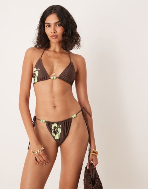 Top de bikini marrón triangular con estampado de flores de hibisco Pami de Motel
