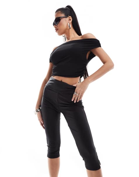 MÁS COLORESTop negro de corte depurado asimétrico con lazada lateral de ASOS DESIGN