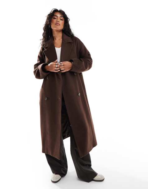 Abrigo de vestir largo marrón con doble botonadura de tejido efecto lana de Aria Cove