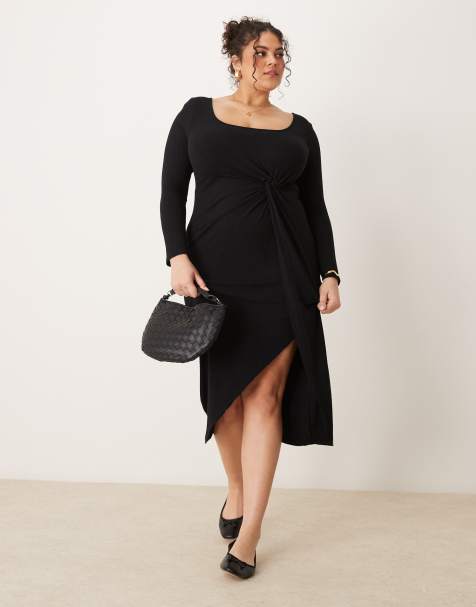 MÁS COLORESVestido largo negro ajustado con diseño moldeado, aberturas asimétricas y detalle de herrajes dorados de Ruched & Ready
