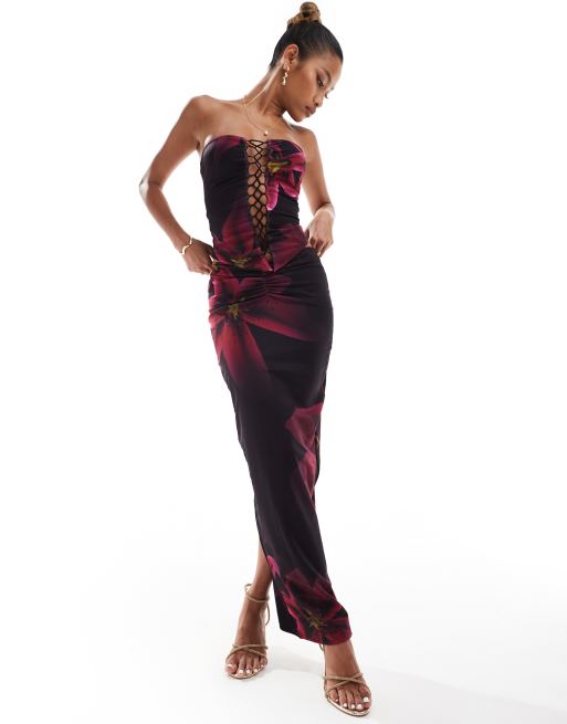 Falda larga morada con estampado de lirio de malla exclusiva de Murci (parte de un conjunto)