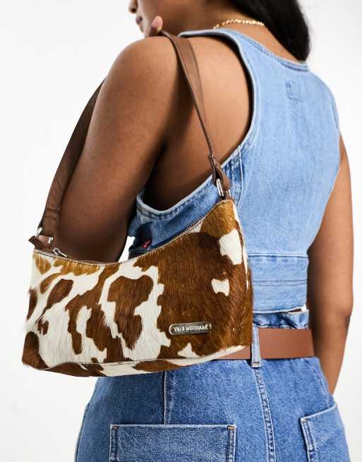 Bolso de hombro alargado y curvado con estampado de vaca de Muubaa