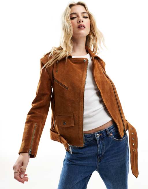 Chaqueta biker color tostado clásica de ante y cuero de Muubaa
