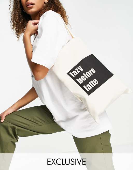 Bolso tote blanco con eslogan en tejido reciclado exclusivo de My Accessories London