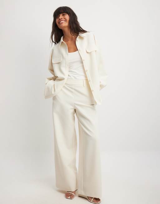 Pantalones beis de corte suelto y talle alto de mezcla de lino de NA-KD x Laura Jane Stone (parte de un conjunto)