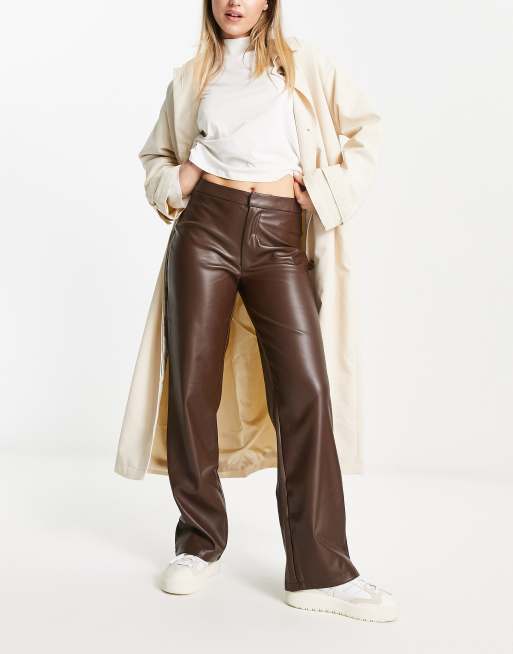 Pantalones marrones de pernera recta de cuero sintético de NA-KD
