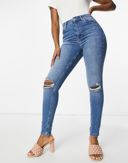 Pantalones pitillo rasgados de algodón NA-KD en azul medio - MBLUE