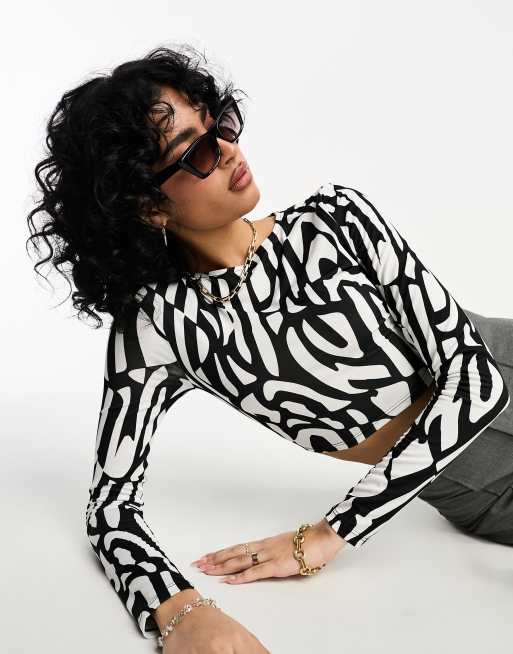 Top negro y blanco con estampado abstracto y abertura de NA-KD x Maddy Nigmatullin (parte de un conjunto)