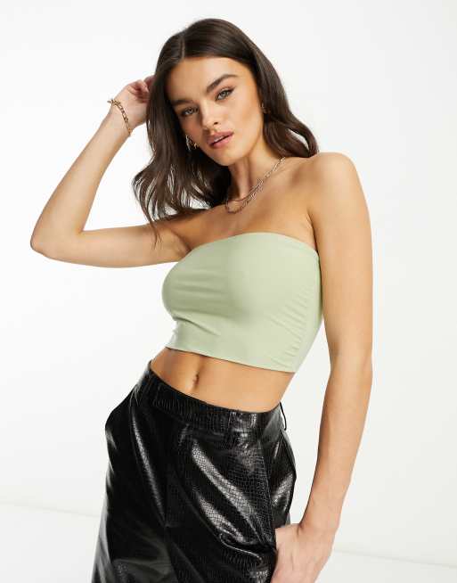 Top verde con escote palabra de honor y detalle cruzado en el cuello de NA-KD x Mimi AR