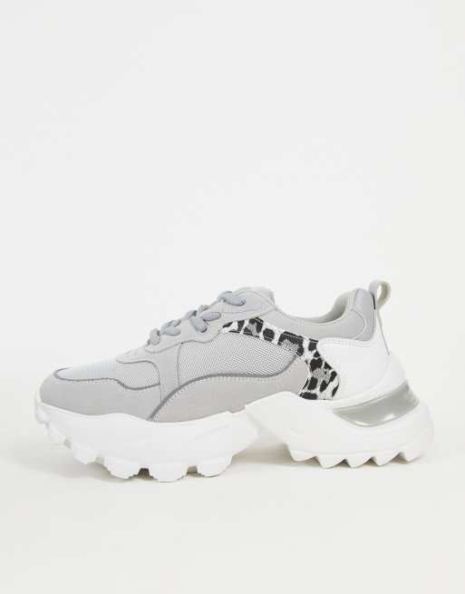 Zapatillas de deporte grises con suela gruesa y estampado de leopardo de NA-KD