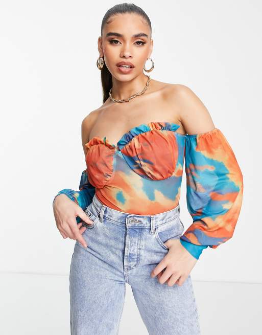 Body naranja estampado con escote de Bardot de NaaNaa