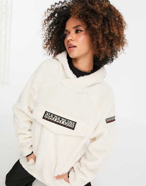 Sudadera blanco hueso con capucha Patch Curly de Napapijri