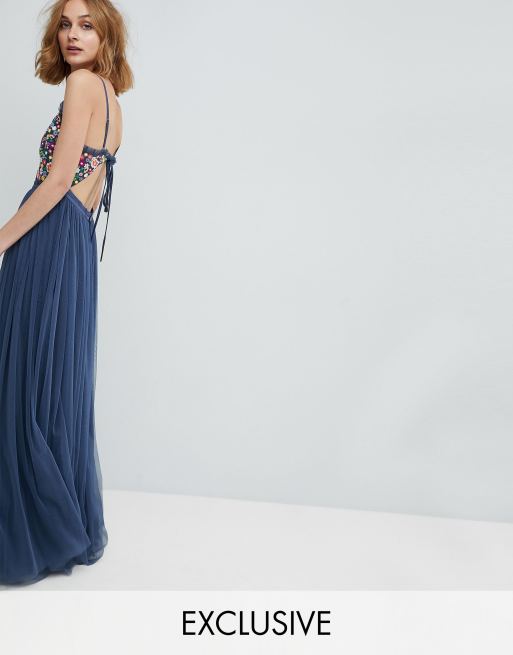 Vestido largo de tirantes con espalda al aire de Needle & Thread