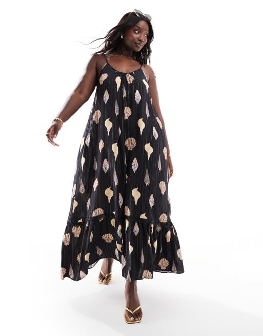 Vestido largo negro con diseño moteado metalizado de Never Fully Dressed Plus