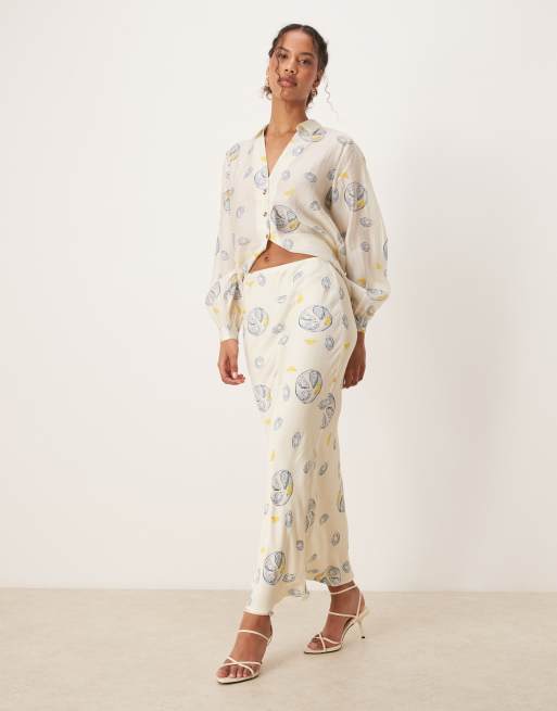 Falda lencera larga con estampado de ostras y limones de satén de Never Fully Dressed (parte de un conjunto)