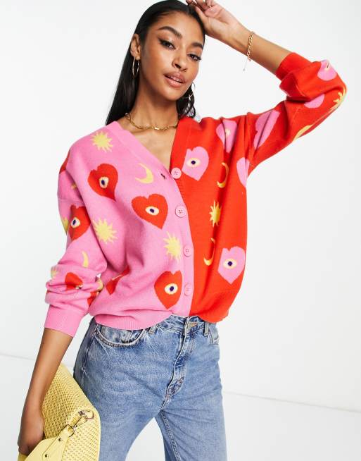 Rebeca rosa y roja con diseño en contraste de punto de Never Fully Dressed (parte de un conjunto)