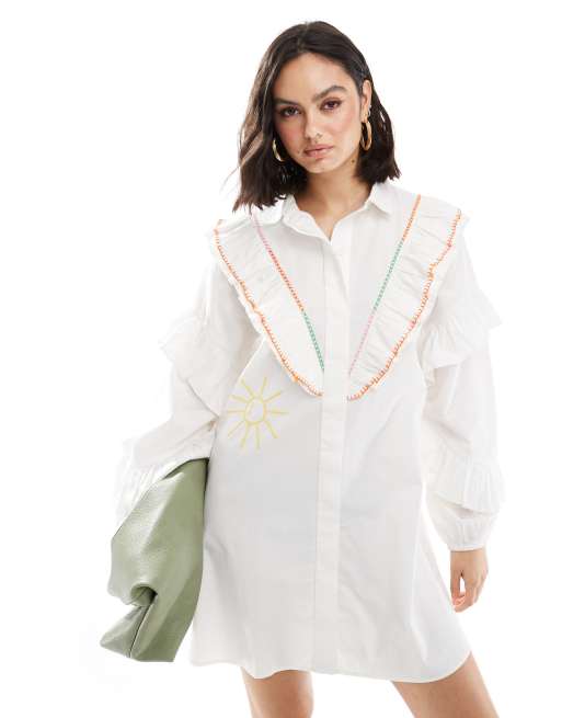 Vestido camisero corto blanco con pespuntes en contraste Austin de Never Fully Dressed