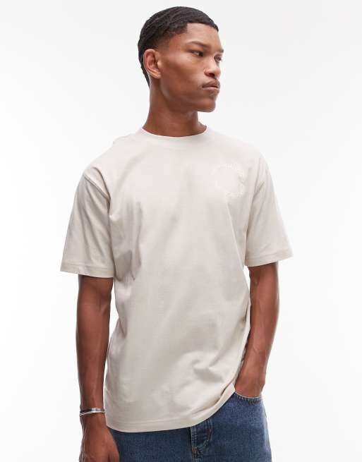 Camiseta beis con estampado de logo redondo en la espalda de New Balance