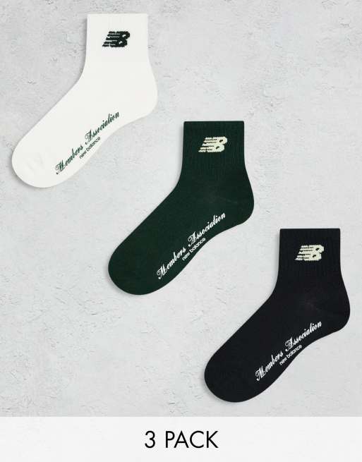 Pack de 3 pares de calcetines tobilleros de color verde, negro y blanco Members Club de New Balance